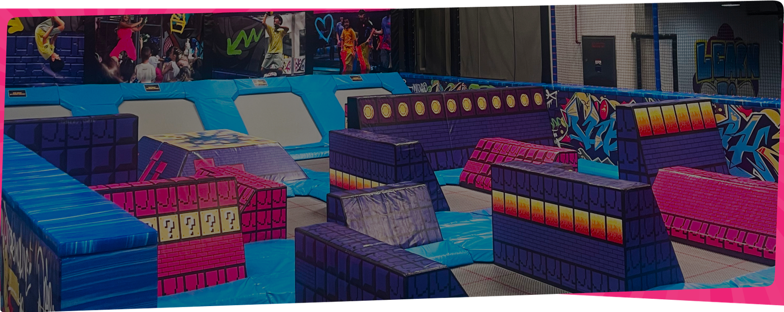 تخيل مكانًا لا ينتهي فيه المرح أبدًا! مكان يضم أنشطة متعددة تحت سقف واحد. مكان تم فيه الجمع بين الأنشطة مما أدى إلى نتيجة فريدة. باركور الترامبولين، الطيران السريع، مسارات النينجا، أنواع متعددة من الترامبولين (بما في ذلك دودج بول وكرة السلة الساحقة)، الممر الحبلي، برج القفز، ميلتداون، المشي على الجدار، الجدار المنحني والكثير والكثير غير ذلك. كل هذا داخل منشأة تبلغ مساحتها 23,000 قدم مربع.